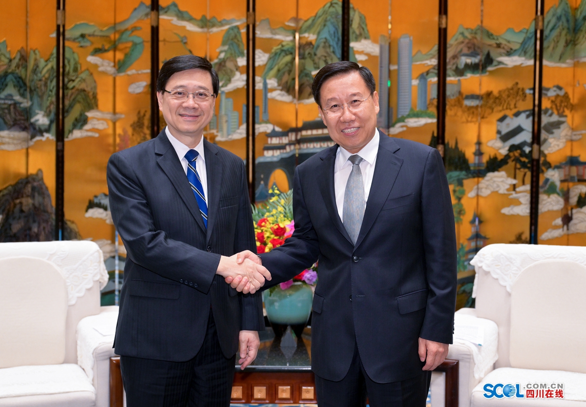 李家超對四川給予香港工作的支持表示感謝,對四川推動高質(zhì)量發(fā)展取得的成效表示贊賞。他說,香港與四川經(jīng)濟(jì)互補(bǔ)性強(qiáng),深化拓展雙方互利合作的前景十分廣闊。特區(qū)政府將聚焦服務(wù)國家發(fā)展大局,充分發(fā)揮“一國兩制”下香港“背靠祖國、聯(lián)通世界”的獨(dú)特優(yōu)勢,依托川港合作會議機(jī)制,持續(xù)加強(qiáng)各領(lǐng)域的深層次合作,共促川港兩地繁榮發(fā)展。我們將全力做好迎接大熊貓的準(zhǔn)備工作。