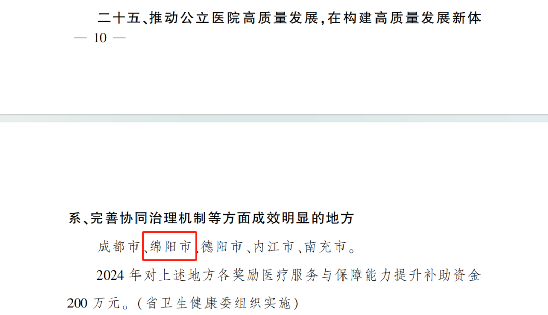 推動(dòng)公立醫(yī)院高質(zhì)量發(fā)展,在構(gòu)建高質(zhì)量發(fā)展新體系,完善協(xié)同治理機(jī)制方面成效明顯:獎(jiǎng)勵(lì)醫(yī)療服務(wù)與保障能力提升補(bǔ)助資金200萬(wàn)元。