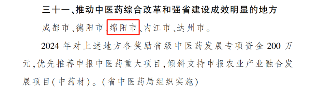 推動(dòng)中醫(yī)藥綜合改革和強(qiáng)省建設(shè)成效明顯:獎(jiǎng)勵(lì)省級(jí)中醫(yī)藥發(fā)展專(zhuān)項(xiàng)資金200萬(wàn)元,支持中醫(yī)藥重大項(xiàng)目、農(nóng)業(yè)產(chǎn)業(yè)融合發(fā)展項(xiàng)目(中藥材)。