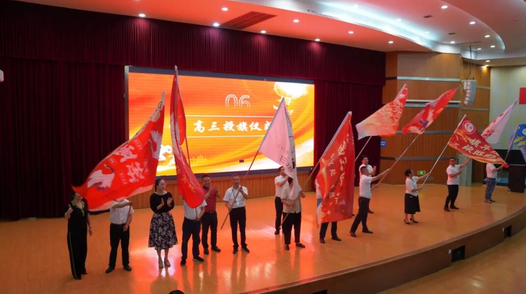 在儀式上,現(xiàn)場(chǎng)行政干部一一為高三班主任授班旗。各班班主任依次帶領(lǐng)本班同學(xué)呼喊高三奮斗口號(hào)!“少年應(yīng)有鴻鵠志,當(dāng)騎駿馬踏平川。”各班的口號(hào),排山倒海,驚天動(dòng)地!這熱烈而壯觀的場(chǎng)面,使全體師生充滿了力量、堅(jiān)定了高考必勝的信心!