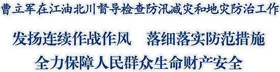 綿陽新聞網(wǎng)訊 7月16日,省委常委、市委書記曹立軍前往江油市、北川羌族自治縣,督導(dǎo)檢查防汛減災(zāi)和地災(zāi)防治工作。他強調(diào),要深入學(xué)習(xí)貫徹習(xí)近平總書記關(guān)于防汛救災(zāi)工作的重要指示精神,全面落實黨中央、國務(wù)院和省委、省政府決策部署,堅持人民至上、生命至上,發(fā)揚連續(xù)作戰(zhàn)作風(fēng),落細(xì)落實防范措施,毫不松懈做好防汛減災(zāi)和地災(zāi)防治各項工作,堅決打贏這場硬仗,全力保障人民群眾生命財產(chǎn)安全。