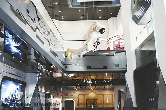 在航天科技館,體驗(yàn)官身穿航天服,帶領(lǐng)同學(xué)們以航天員的身份開啟“探秘太空”之旅。聲光電、穹幕影院、軌道車……同學(xué)們在充滿科技感的互動體驗(yàn)項(xiàng)目中學(xué)習(xí)航天知識,了解中國航天事業(yè)的輝煌歷程。