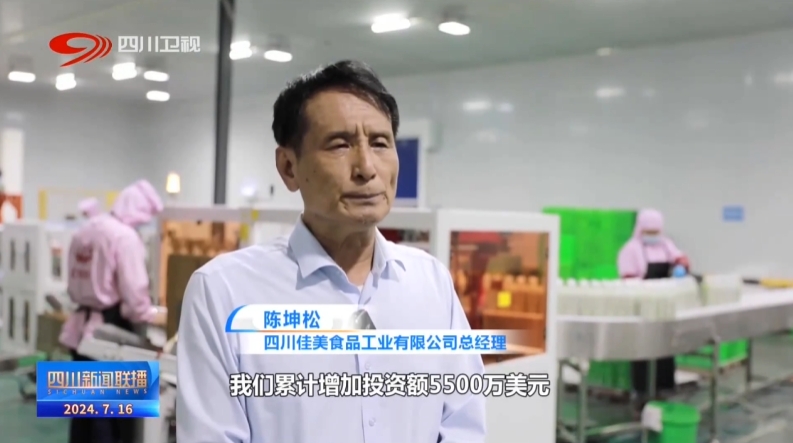 四川佳美食品工業(yè)有限公司總經(jīng)理 陳坤松:落地四川以來,我們累計(jì)增加投資額5500萬美元。當(dāng)?shù)卣畬τ诠S的發(fā)展相當(dāng)關(guān)心重視,也給工廠扶持引導(dǎo)獎勵激勵優(yōu)惠政策,作為外資企業(yè),有信心持續(xù)增資擴(kuò)產(chǎn),不斷做大做強(qiáng)。