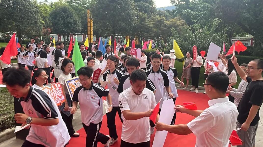 教師方隊在李斌的帶領(lǐng)下率先邁向長風樓,夾道迎接全體同學。各班護旗手高舉班旗,在熱烈的掌聲中,各班班主任帶領(lǐng)學生步履鏗鏘地邁向長風樓。這一刻,高2025屆全體師生懷揣著夢想和希望,開啟下一段征程。