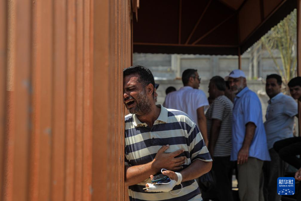 7月22日,在加沙地帶南部城市汗尤尼斯,人們哀悼死難者。新華社發(fā)(里澤克·阿卜杜勒賈瓦德攝)