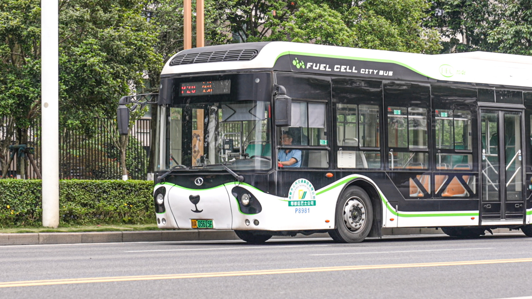 成都市郫都區(qū)運(yùn)營(yíng)的氫能公交車(chē)(川觀新聞?dòng)浾?陳旻翔攝)