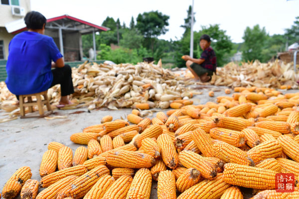 7月25日,記者在三臺縣蘆溪鎮(zhèn)、劉營鎮(zhèn)鄉(xiāng)村公路兩側(cè)看到,許多農(nóng)戶在院壩里忙著剝玉米,院落里呈現(xiàn)一片金黃色。