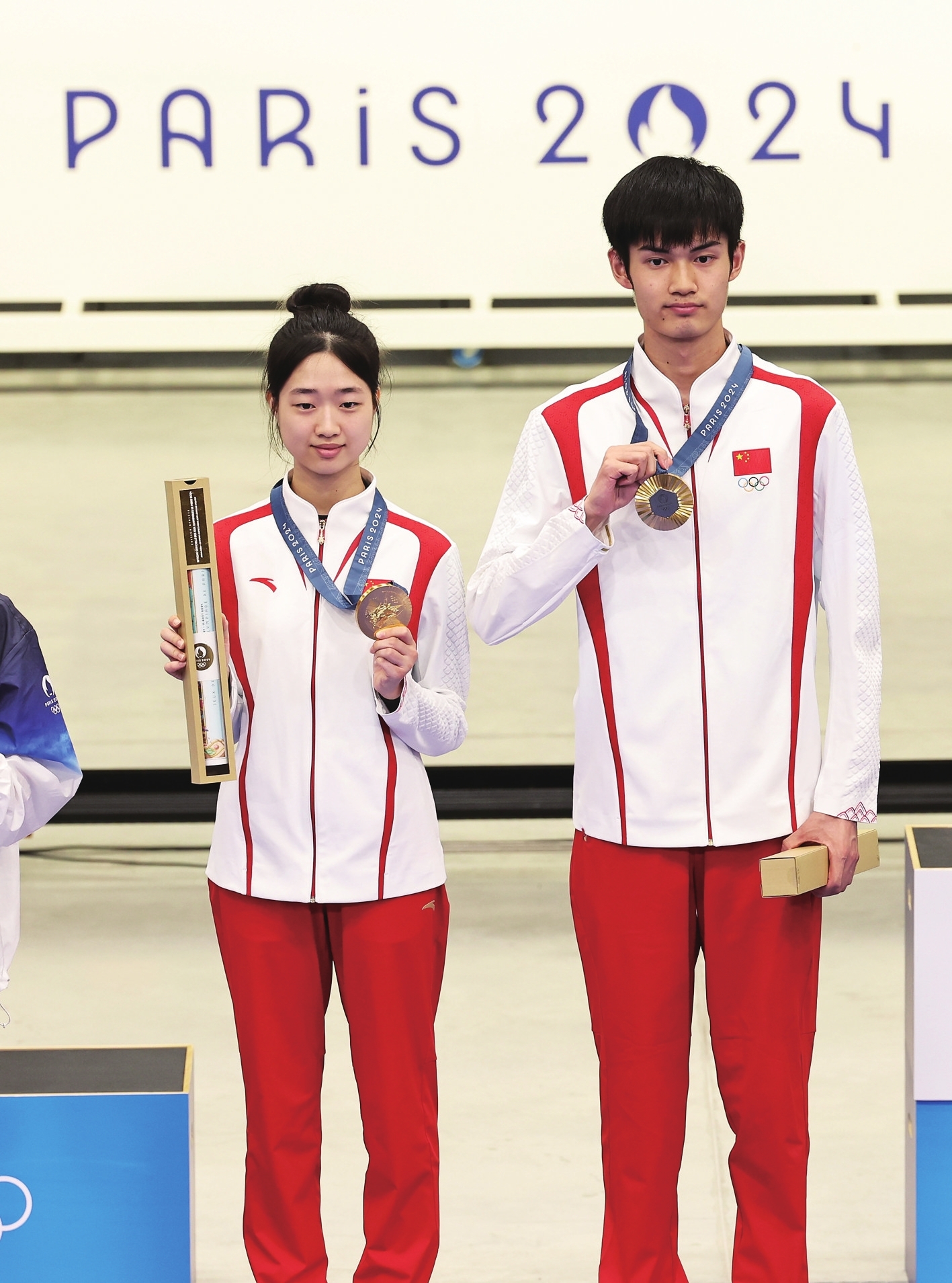 在27日的巴黎奧運會首金爭奪中,代表中國隊出戰(zhàn)的是黃雨婷/盛李豪和韓佳予/杜林澍兩對組合。四人中僅盛李豪有過奧運經(jīng)驗,他在東京奧運會上一鳴驚人奪得男子10米氣步槍銀牌。三年過去,盛李豪更加成熟,他的混團搭檔黃雨婷年齡雖小,在賽場上卻異常沉穩(wěn),兩人已攜手奪得世錦賽、亞運會等多項大賽冠軍。