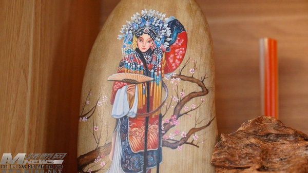 近日,記者來到張霞石藝工作室,環(huán)壁的櫥架上,風(fēng)光旖旎的山水、嬌艷無比的花草、雍容華麗的戲劇人物扮相、呆萌可愛的熊貓……從擺件到掛件、從吊墜到居家器物。這些石畫緣自形態(tài)各異的石頭,生動(dòng)而細(xì)膩的繪畫功底令人驚嘆。