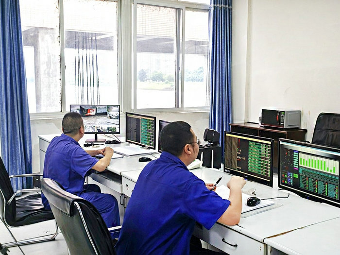 連日降雨,涪江水位上漲。在科光電站值班室內(nèi),閘門情況、水量變化在電腦上一覽無余,工作人員每隔一小時就要進(jìn)行圖文消息記錄。