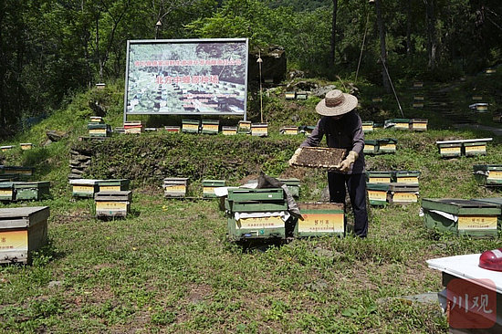 7月,“唐家河蜂蜜”進入收獲期,在唐家河保護區(qū)內唯一的行政村——落衣溝村,蜂農(nóng)正忙著割蜜。