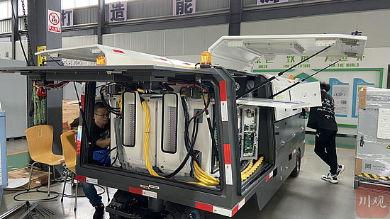 四川航電微能源有限公司車間,工作人員正在測(cè)試儲(chǔ)能設(shè)備。