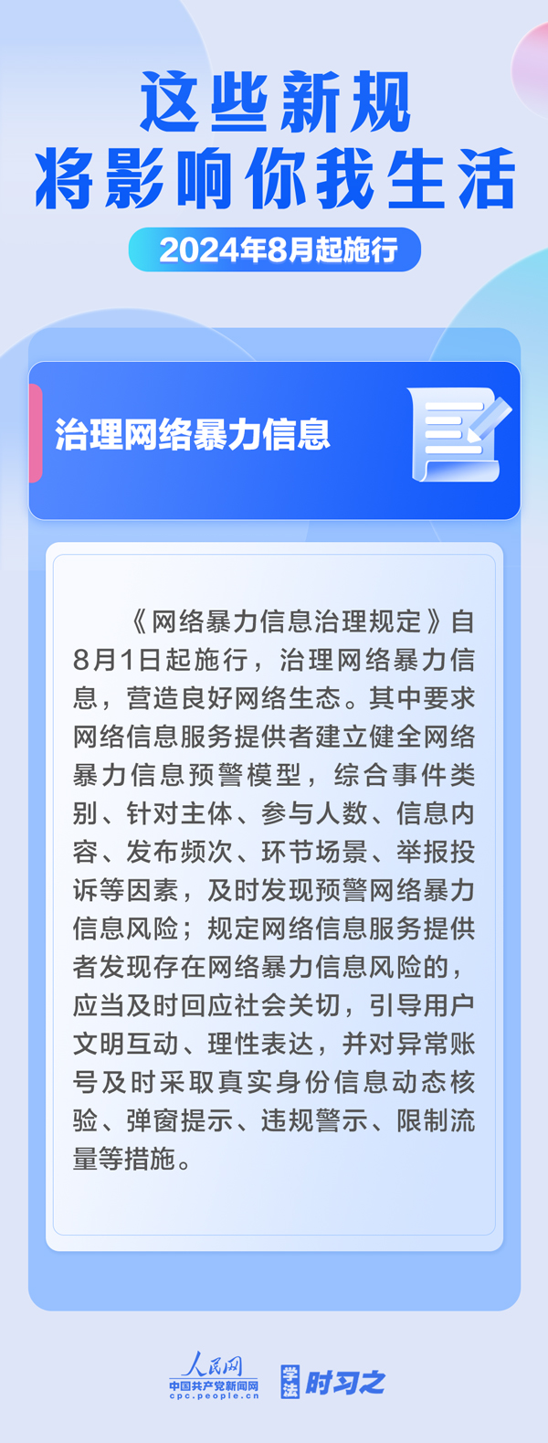 治理網(wǎng)絡暴力信息;規(guī)范重要商品和服務價格指數(shù)行為;明確中藥飲片標簽應當明示產(chǎn)品屬性……8月起,這些新規(guī)施行,將影響你我生活。