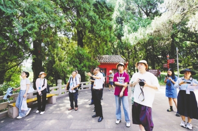 媒體蜀道行采訪團(tuán)在翠云廊采訪(吳楓攝)