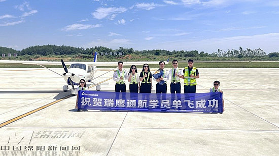 “12RK已檢查好,請示開車。”瑞鷹通航學員秦熠熟練的進行著單飛前的最后一次報話。伴隨著一系列干凈利落的技術指揮以及飛行實操,秦熠駕駛訓練飛機平安地在北川永昌機場著陸,成為該機場首位單飛成功的學員。