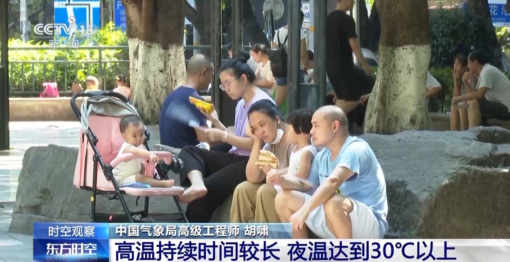 第二點我們要關(guān)注的就是很多區(qū)域一天當(dāng)中,持續(xù)的高溫時間是比較長的,大多能達(dá)到9到10個小時,個別地方甚至在11到13個小時。而且很多地區(qū)夜溫會在30攝氏度以上,所以暑熱會貫穿全天。