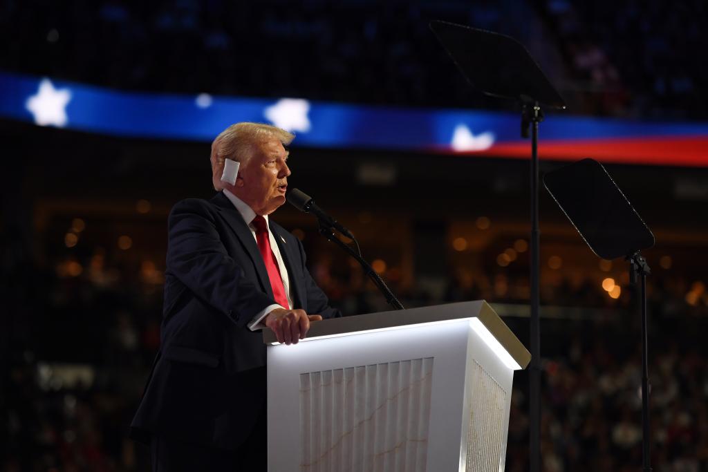 7月18日,美國(guó)前總統(tǒng)特朗普在密爾沃基的共和黨全國(guó)代表大會(huì)上發(fā)表演講。新華社記者李睿攝