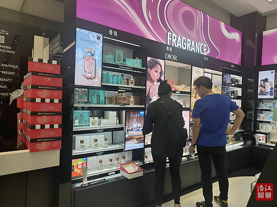 “這個(gè)香水味道不錯(cuò),包裝可以精致點(diǎn)嗎”在凱德廣場(chǎng)一化妝品店,一男士正在為愛(ài)人挑選香水。記者駐留3分鐘時(shí)間,就來(lái)了好幾個(gè)快遞小哥取包裝好的節(jié)日化妝品禮物。
