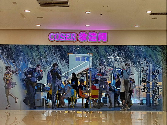 二次元愛(ài)好者正在西安小寨銀泰百貨的妝造間化妝