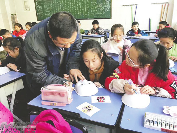 給學生傳授盔頭的制作方法(受訪者提供)