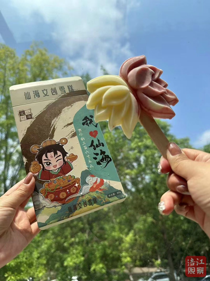 據(jù)了解,仙海文創(chuàng)雪糕通過專人設計,結(jié)合了“小沉香”形象以及仙海文化旅游特色,承載著仙海的歷史文化,使它不僅能消暑解渴,還成為一款打卡、分享神器,能夠為游客提供更多“增值”體驗。美好的風景配上美味的雪糕定格在美麗的照片里,讓游玩仙海之美的體驗更多元、更深刻。