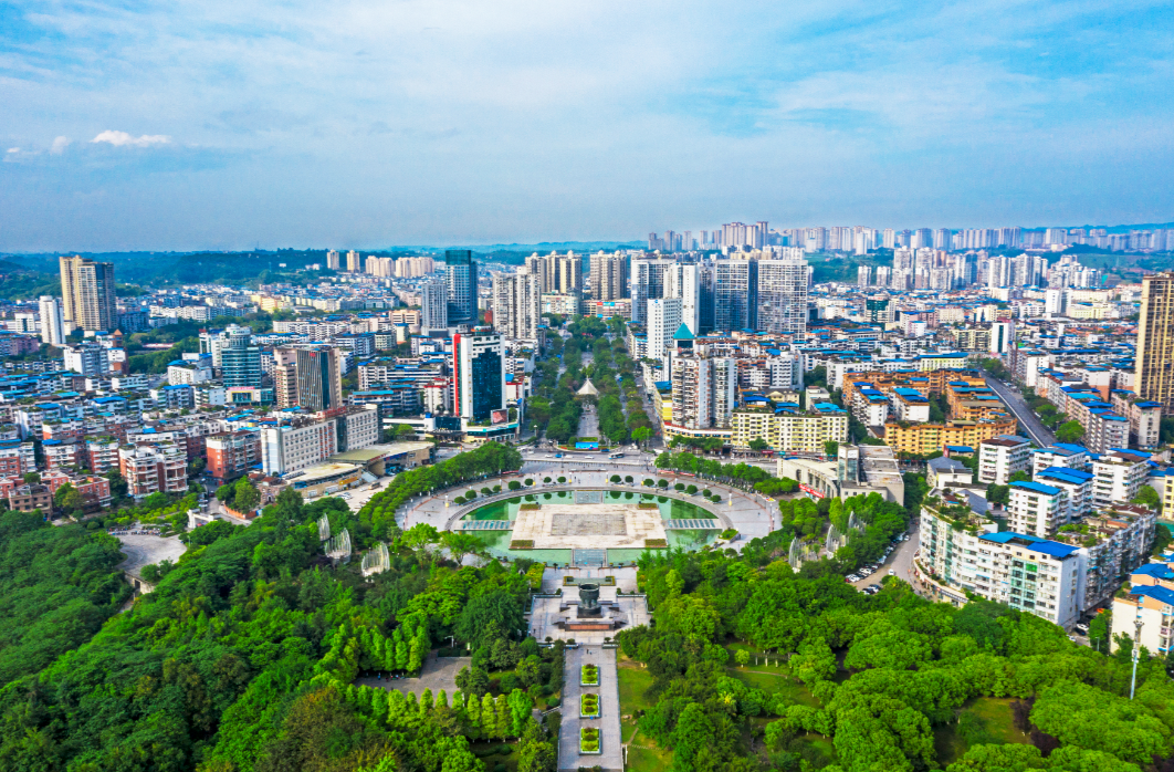 廣安城區(qū),外圓內(nèi)方的思源廣場,從空中俯瞰仿佛一個巨大輪子。這個意象恰似一個隱喻:驅(qū)動“前進之輪”,廣安逐浪前行!