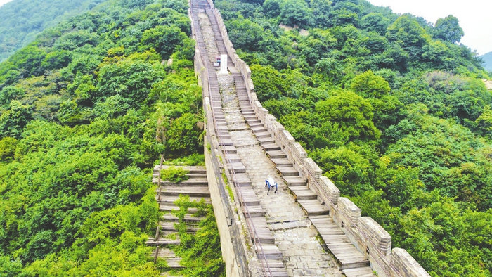 人形機(jī)器人夸父-MY登上長(zhǎng)城,擔(dān)任兼職巡檢員和講解員