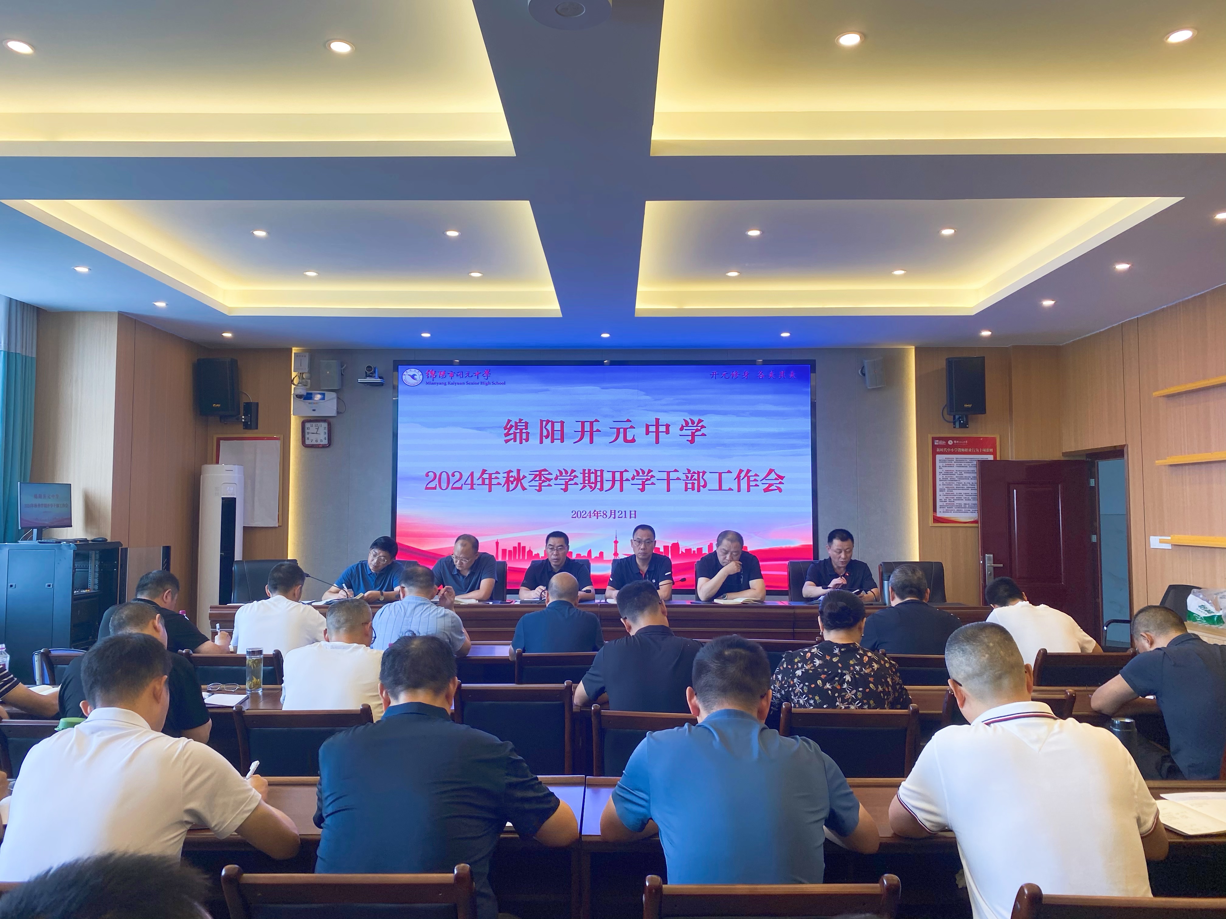 8月21日上午,綿陽市開元中學在和美樓5樓會議室召開了以“凝心聚力謀發(fā)展,奮楫揚帆啟新程”為主題的2024年秋開學干部工作會,該校中層以上管理干部與會,黨委副書記、校長敬正雄主持會議。