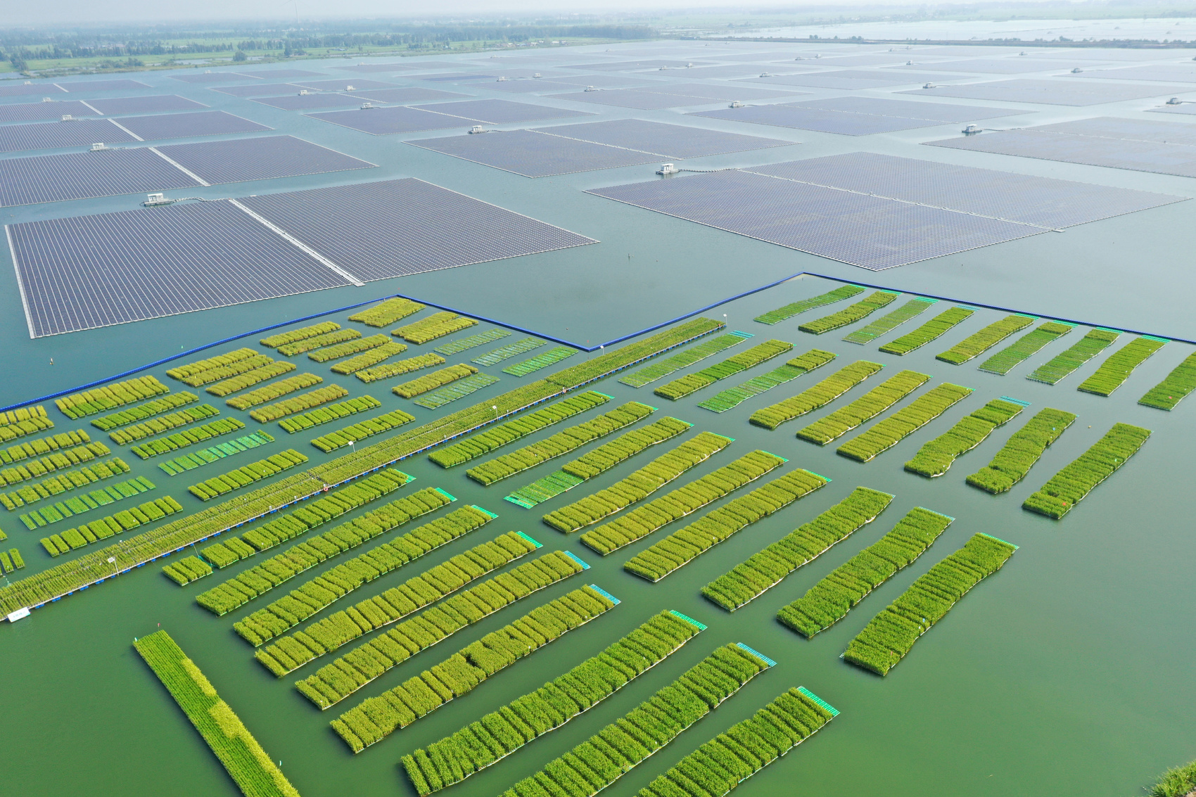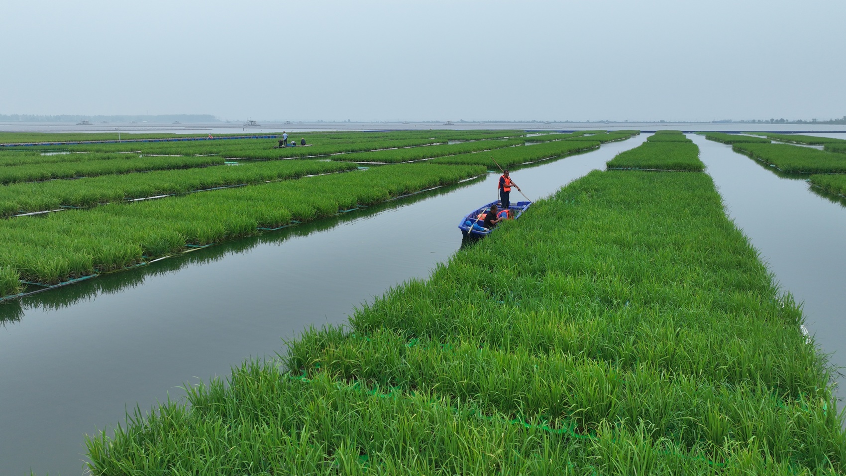 7月30日,項目工作人員在采煤地表沉陷區(qū)水面進行田間管理。新華社發(fā)(謝睿攝)