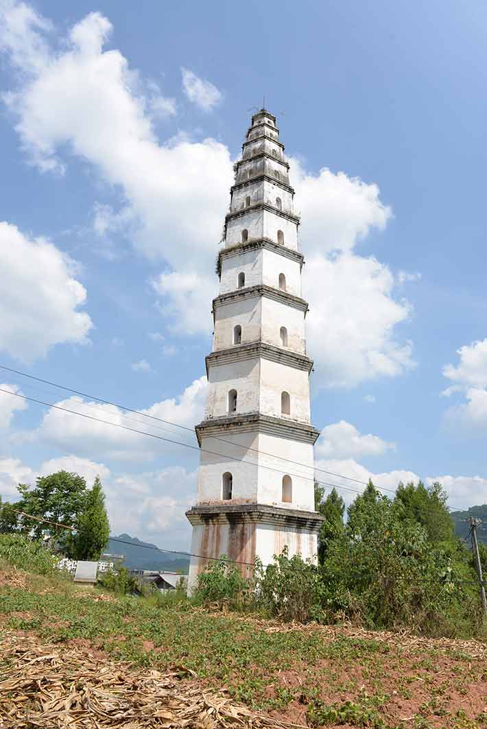 胡華庭是步月塔的籌建者。相傳,清雍正年間,漁溪寺場(chǎng)剛建不久,有一修煉千年的妖怪興風(fēng)作浪,禍害百姓。后經(jīng)一道士指點(diǎn),胡華庭遂組織鄉(xiāng)人捐資在漁溪寺場(chǎng)南修建文峰塔——步月塔,以鎮(zhèn)住烏龜精,并將建塔的山包命名“烏龜包”。塔以“步月”命名,寓意上可登云步月,下可鎮(zhèn)妖避難。自此,“文塔凌云”成為“漁溪八景”之一。
