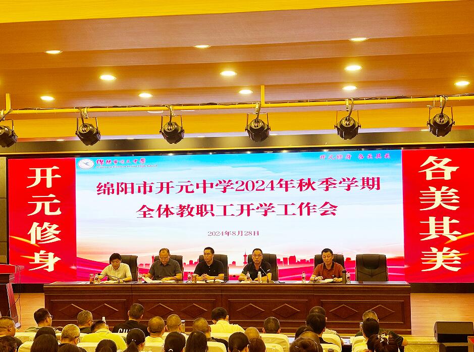 8月28日上午9:00,綿陽(yáng)市開(kāi)元中學(xué)在和美樓六樓學(xué)術(shù)廳召開(kāi)了以“熱氣騰騰啟新程,行穩(wěn)致遠(yuǎn)鑄新輝”為主題的2024年秋季學(xué)期全體教職工大會(huì)。該校黨委書(shū)記王力等相關(guān)班子成員及300余名教職員工參會(huì),會(huì)議由黨委副書(shū)記、校長(zhǎng)敬正雄主持。