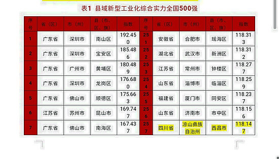 9月2日,賽迪工業(yè)和信息化研究院(集團(tuán))四川有限公司(簡(jiǎn)稱“賽迪四川”)發(fā)布《中國(guó)縣域新型工業(yè)化指數(shù)研究報(bào)告(2024)》。在縣域新型工業(yè)化綜合實(shí)力全國(guó)500強(qiáng)中,四川共上榜26個(gè)縣(市、區(qū)),其中6個(gè)市轄區(qū)上榜全國(guó)100強(qiáng)。