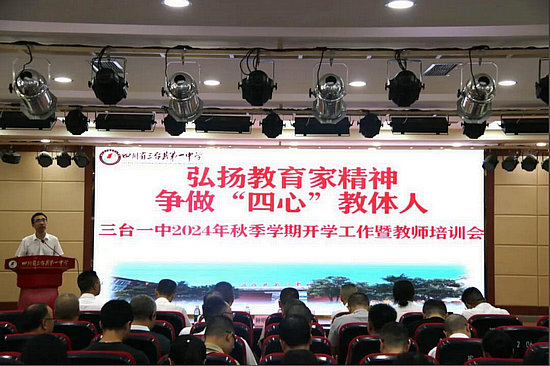 綿陽新聞網(wǎng)訊 8月31日上午,三臺一中召開了以“弘揚教育家精神,爭做‘四心’教體人”為主題的2024年秋季學(xué)期教師培訓(xùn)會,全校教職員工參加會議。