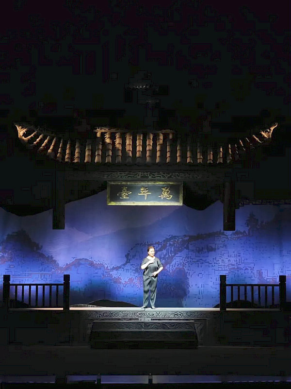 “月上九門開,不倒萬年臺……生旦凈末善惡丑,悲歡離合喜怒哀。”隨著臺上悠揚(yáng)流暢的唱腔唱響,《最后一臺封箱戲》拉開戲幕。