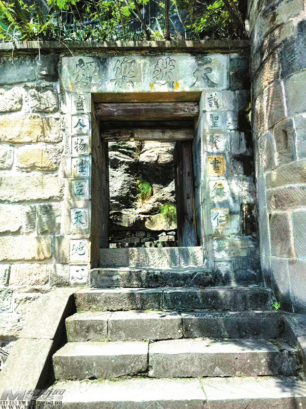 進入尋樂書巖大門,可以看見一副對聯(lián):“讀圣賢書行仁義事,盡人物性立天地心”,橫批“天然樂趣”。字跡雖有些風化,但還比較清晰。這副對聯(lián)化用了朱熹的兩副對聯(lián)“立修齊志,讀圣賢書”和“行仁義事,存忠孝心”,體現(xiàn)出中國傳統(tǒng)儒家思想文化的印跡。