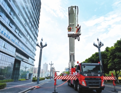 這次演練中,新投入勤務(wù)的中聯(lián)重科72米登高平臺消防車發(fā)揮了重要作用。據(jù)介紹,這是全市首個最大作業(yè)高度達(dá)72米、最大作業(yè)幅度超26米的消防車,滅火半徑90米。