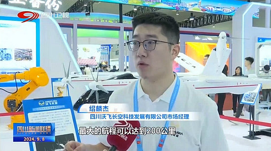 四川沃飛長(zhǎng)空科技發(fā)展有限公司市場(chǎng)經(jīng)理 紹麟杰:最大的航程可以達(dá)到200公里,最快的速度可以達(dá)到248公里每小時(shí),未來的應(yīng)用領(lǐng)域,主要運(yùn)用在城際之間的接駁服務(wù)、短途的旅游觀光。