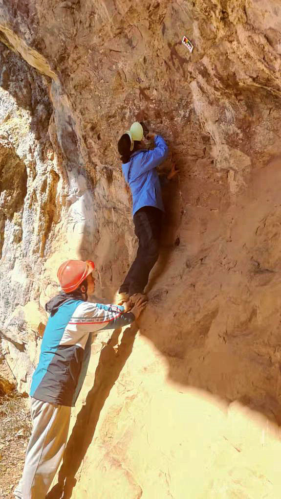 目前,團隊已完成滄源崖畫及相關(guān)遺址分布地形圖制作。通過高精度鈾系測年獲得滄源崖畫的絕對年代為距今3800年至2700年之間,同時,對崖畫顏料及相關(guān)遺址文化層中出土的顏料、赤鐵礦礦石進行了采樣和分析。