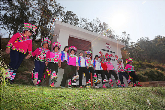 在“世界水日”到來之際,祿豐市黑井鎮(zhèn)三合村的彝族婦女們身著盛裝、笑靨如花,在剛投入使用的“母親水窖”旁跳起彝族左腳舞。身后白墻上,“中國婦女發(fā)展基金會母親水窖”幾行大字十分醒目。