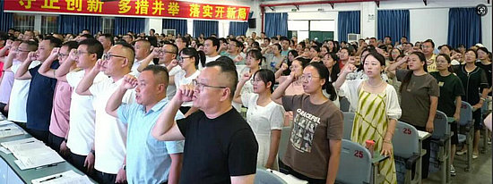 最后,全體教職工舉行了莊嚴的師德師風宣誓儀式。教師們緊握右拳,鏗鏘有力地許下承諾。這一莊嚴的宣誓,不僅展現(xiàn)了蘆溪中學教師隊伍的良好風貌,更為新學年的教育教學工作奠定了堅實的基礎(chǔ)。