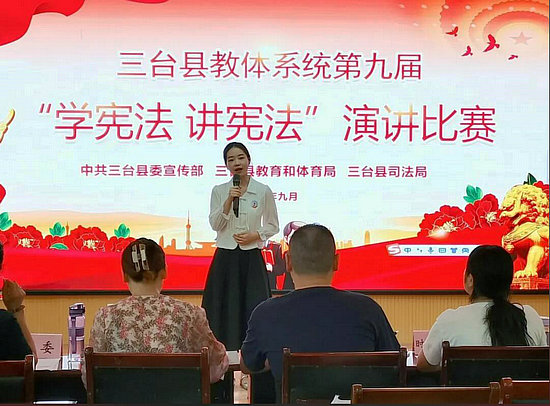綿陽新聞網(wǎng)訊 9月6日至7日,在三臺縣教體系統(tǒng)第九屆“學憲法 講憲法”暨法治素養(yǎng)提升成效展演活動決賽中,三臺中學2023級22班王晴榮獲法治素養(yǎng)競賽冠軍,2023級22班唐巧榮獲法治素養(yǎng)競賽亞軍,2023級24班來馨怡榮獲法治素養(yǎng)競賽季軍?。玻埃玻臣売⒄Z教師彭玥榮獲法治演講競賽教師組一等獎。三臺中學榮獲優(yōu)秀組織獎!