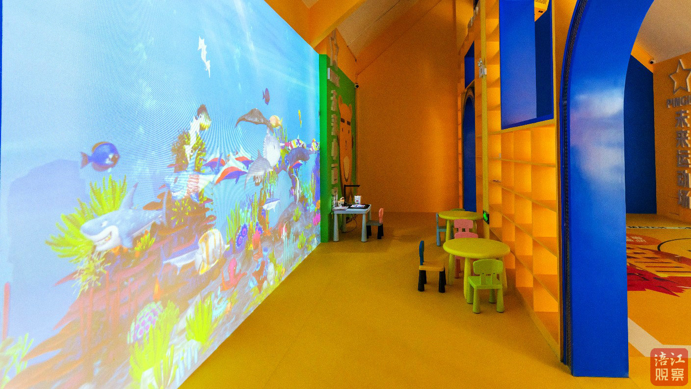 在“未來小畫家”體驗區(qū),游客可以拿起體驗館特制的畫筆大開腦洞,隨心所欲地在“海底世界”繪畫。