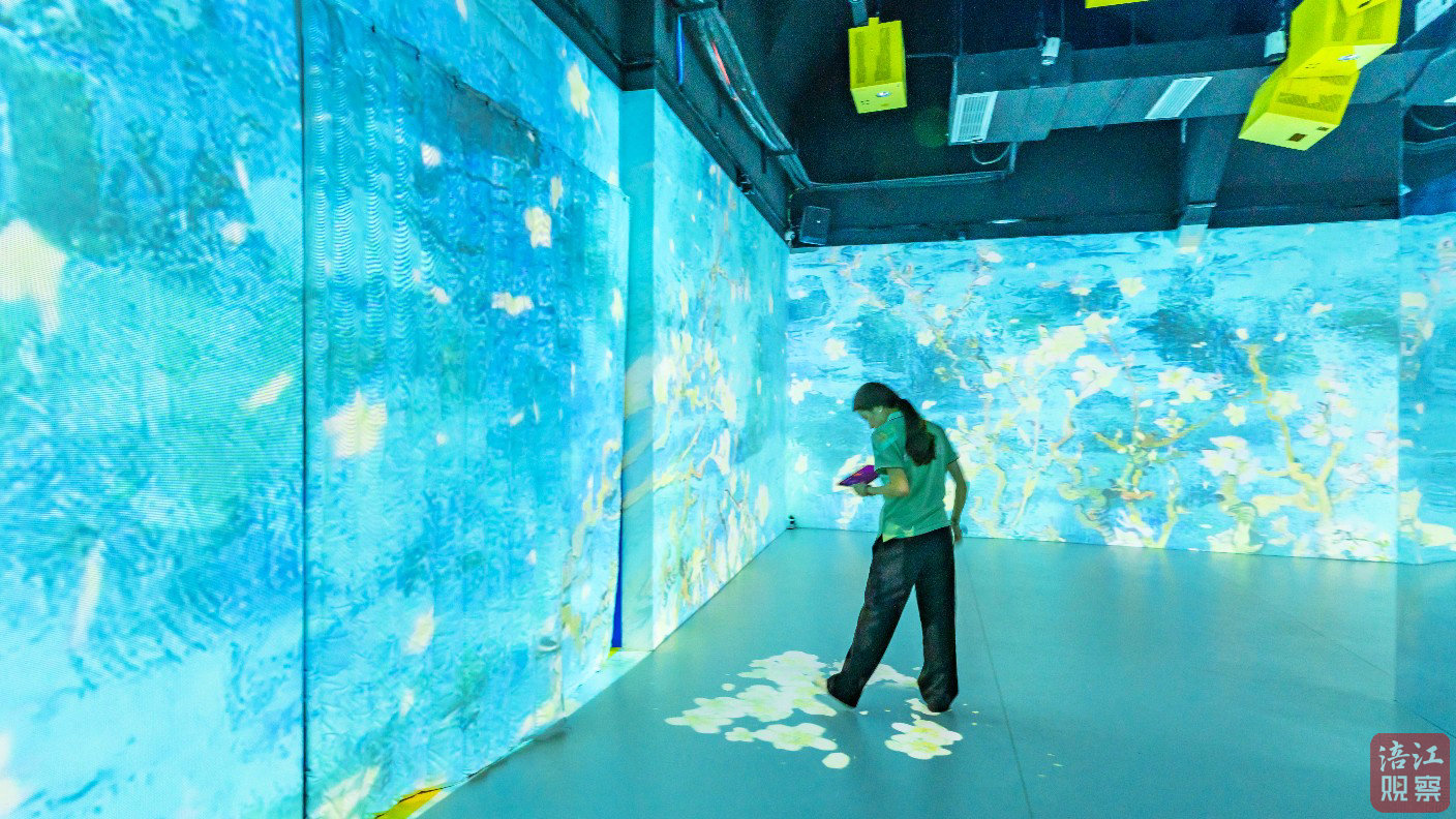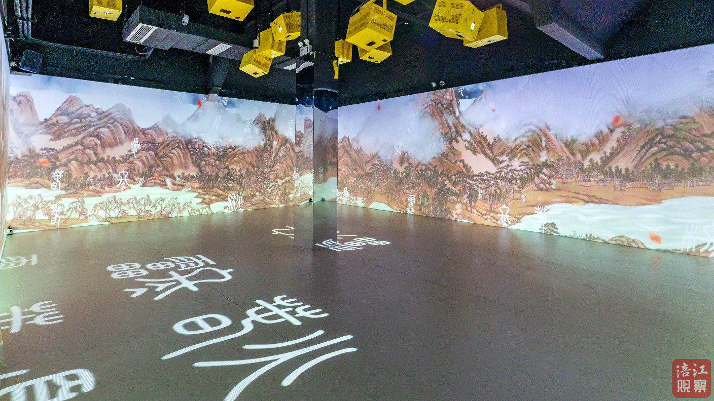 在“沉浸式體驗空間”里,秀麗的山川湖水在四時交替中更顯唯美,孔明燈冉冉升起承載著思念和祝福飛向蒼穹,淋漓的筆墨、空靈的畫面帶著濃濃的詩意,讓人沉醉其中。