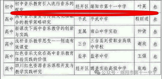 沈小雪老師榮獲綿陽(yáng)市中小學(xué)班主任技能大賽一等獎(jiǎng),葉英老師榮獲綿陽(yáng)市中小學(xué)藝術(shù)學(xué)科教育教學(xué)論文三等獎(jiǎng)。