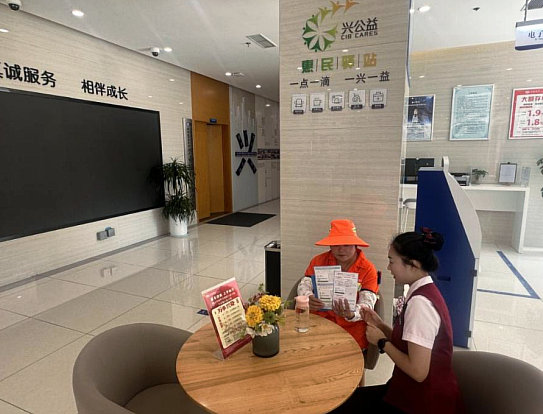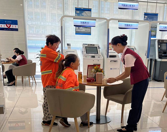 在分行營(yíng)業(yè)大廳內(nèi),除了前來(lái)辦理業(yè)務(wù)的客戶,時(shí)常能看到一些環(huán)衛(wèi)工人、快遞員等戶外勞動(dòng)者在“興公益”惠民驛站休息。該惠民驛站不僅為戶外勞動(dòng)者提供了舒適的休息環(huán)境,還準(zhǔn)備了防暑降溫物品,如解暑涼茶、藿香正氣水、風(fēng)油精等。“以前只能在路邊樹(shù)蔭下坐著,興業(yè)銀行這里不僅環(huán)境好,還能補(bǔ)水消暑,中午休息一會(huì)兒,整個(gè)人都有精神了。”在“興公益”惠民驛站休息的環(huán)衛(wèi)工李阿姨說(shuō)。