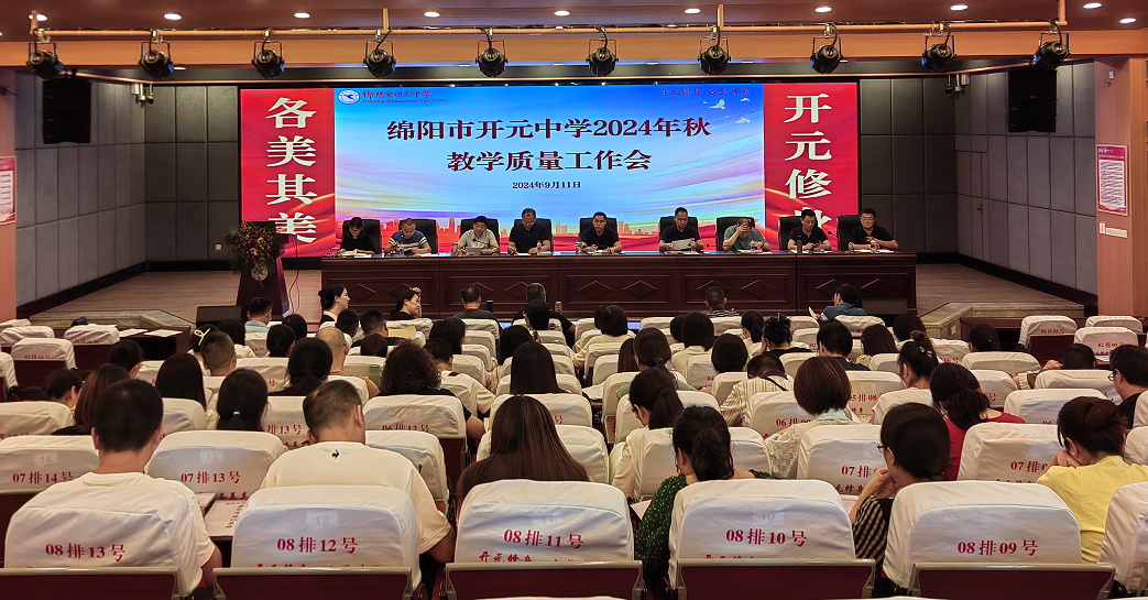 9月11日下午,綿陽市開元中學(xué)在學(xué)校和美樓六樓學(xué)術(shù)廳召開了以“共謀發(fā)展,再啟新程”為主題的2024年秋季學(xué)期教學(xué)質(zhì)量工作會議。各年級(部)負(fù)責(zé)人及各學(xué)科質(zhì)量組長參會,黨委書記王力,黨委副書記、校長敬正雄等學(xué)校領(lǐng)導(dǎo)與會。會議由教科室副主任陽林鳳主持。