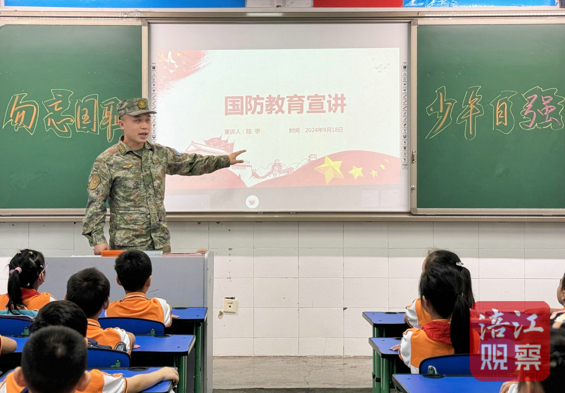 在綿陽(yáng)實(shí)驗(yàn)小學(xué),學(xué)校開展國(guó)旗下講話“勿忘國(guó)恥,少年自強(qiáng)”教育活動(dòng),邀請(qǐng)解放軍叔叔為孩子們進(jìn)行國(guó)防教育,講述國(guó)防建設(shè)的重要意義以及人民軍隊(duì)在保家衛(wèi)國(guó)中的英勇事跡。