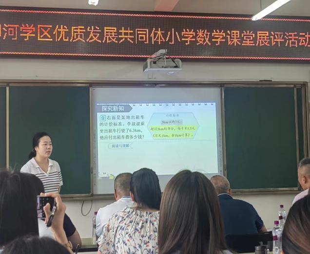 此次課堂展示采用無聲試講的方式,來自共同體的六所學(xué)校的參選教師精心設(shè)計課堂教學(xué)活動,積極探索、大膽嘗試、充分發(fā)揮自己的優(yōu)勢。課程設(shè)計中采用小組合作等形式,充分鍛煉了學(xué)生利用數(shù)學(xué)知識和數(shù)學(xué)思維在現(xiàn)實生活中解決問題的能力:在信義小學(xué)王藝老師的教學(xué)設(shè)計中,結(jié)合現(xiàn)實生活中出租車的計費方式和學(xué)生共同探討遇到生活中的分段計費該怎么辦;白蟬小學(xué)的梅剛老師則結(jié)合學(xué)習(xí)生活實際,引導(dǎo)學(xué)生如何分析問題,解決問題;鹽泉小學(xué)的王博老師則充分抓住學(xué)生感興趣的內(nèi)容,超市購物來教學(xué)單價、數(shù)量和總價。