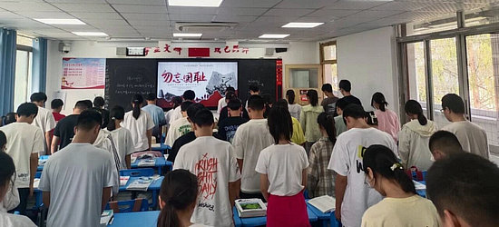 廣播聲中,深沉有力的話語向全校師生詳細(xì)闡述了“九一八”事變的背景、經(jīng)過和影響。在以“銘記歷史 勿忘國恥”為主題的班會(huì)上,班主任用圖片、視頻等形式講述了“九一八”事變的慘烈場景和救亡圖存的英雄事跡。沉重的警報(bào)聲響起,師生肅立默哀,深切緬懷在“九一八”事變中遇難的同胞和英勇犧牲的先烈。