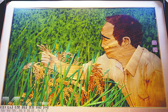在龍怡珍創(chuàng)作的眾多麥稈烙畫(huà)人物中,《一粒米的史詩(shī)》運(yùn)用國(guó)畫(huà)元素進(jìn)行烙繪,突出人物細(xì)微的面部表情及綠色水稻的靈動(dòng)線(xiàn)條,講述雜交水稻之父袁隆平的辛勤耕耘之路。這幅作品于今年8月初入選了沿黃九省區(qū)民間工藝美術(shù)精品展。